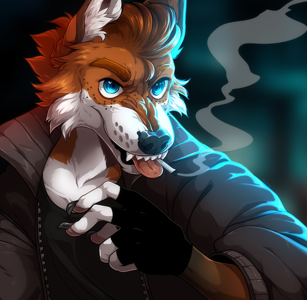 #anthro #anthropomorphic #cig #city #cityscape #coyote #edgy #emo #furry #fursona #glow #goth #neon #night #oc #punk #rodrick #smoke #smoking #sultry #snapback #sparkledog #cigarette