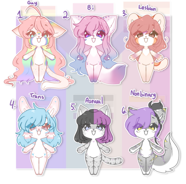 All of the pride ychs I did <3Here's pride for different sexualities, genders, and nationalities <3