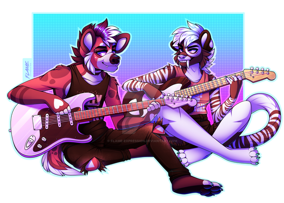 OH MY GOSH THIS IS AMAZING!!! I LOVE the background, it is so friggin' beautiful You really nailed Dominic's design, and I love how you positioned him so you can see his back markings X3 Aaaahh just look at these two! They both look so dang cool!!
