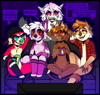 Okay, so some of you guys might remember me mentioning a huge detailed background piece featuring 13 of my ocs... And here it is~Characters pictured are Snuff, Kestrel, Blaise, Maverick, Taz, Cherri-Bomb, Cyanide, Jones, Manami, Kiki, Jasper, Kairo, and Alice. (If you know who is who then you're pretty fab)