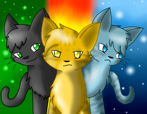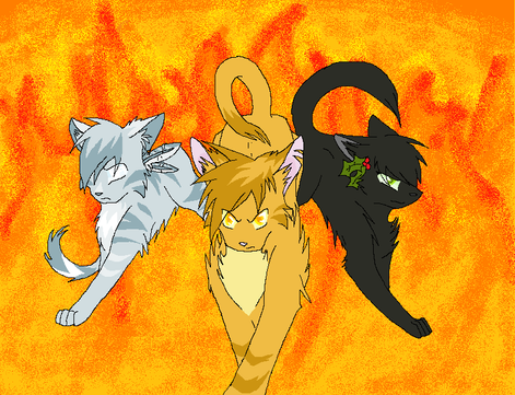 Lol, at first I thought this was Lionblaze, Hollyleaf & Jayfeather (Hollyleaf is black) but then I was like, ooooooooh, they know what color Jayfeather is, that's Firestar, Tigerstar, & Brambleclaw, but then I thought Tigerstar was Hollyleaf^^'