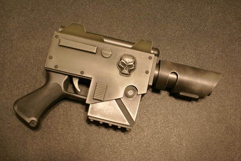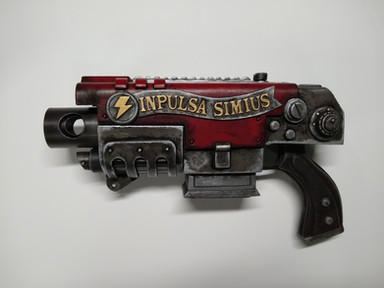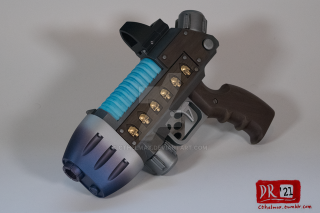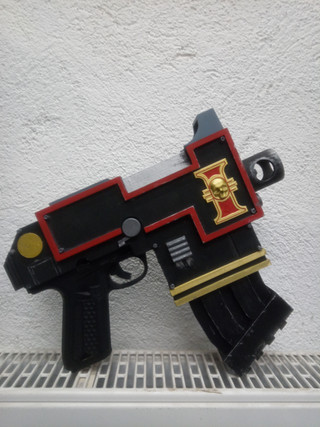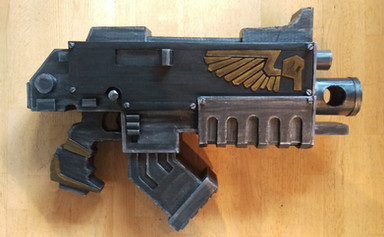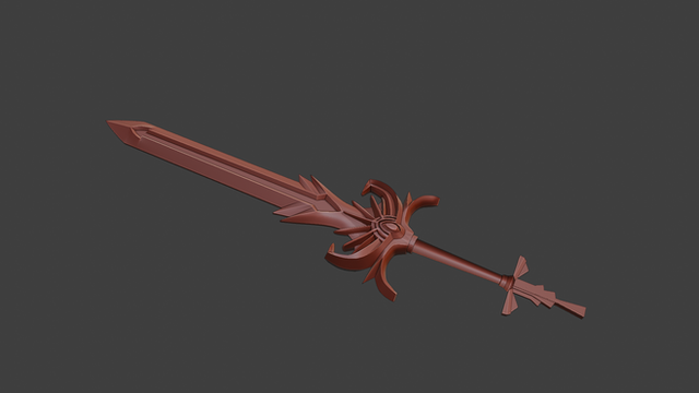 I 3D modelled and printed this sword out of PLA in multiple parts - the parts were heat welded together using a soldering iron & some superglue + pegs to tack them in place. The heat welds were sanded out and the final piece was painted with rub and buff silver / gold with the center highlight being airbrushed in and highlights added.