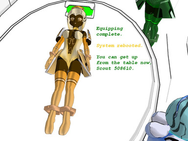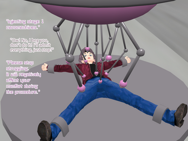 I was envisioning a forcefield around the table area (By the steps, floor-to-ceiling) that would only allow inorganics through, but would trap organic beings there. Would make 4076's job easier...
