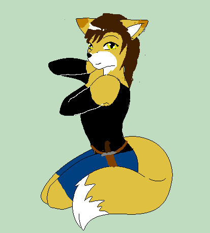 It's not supposed to be proportional; it's cartoony. The tattoo stands for StupidFox, which comes from the comic from *SilentReaper . That's also what my cosplay group is cosplaying for the last day of AX. We're cosplaying the main characters and the other colorful foxes: red, yellow, green, blue, purple, white, black, brown, gray, and rainbow.