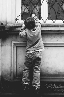 My nephew, taking in the view.Desaturated, levelled, cropped.