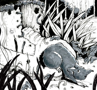 Little mouse barely escaping its foesI procrastinated quite a bit again but I liked how it turned out although at the same time, I missed filling big blank spots.