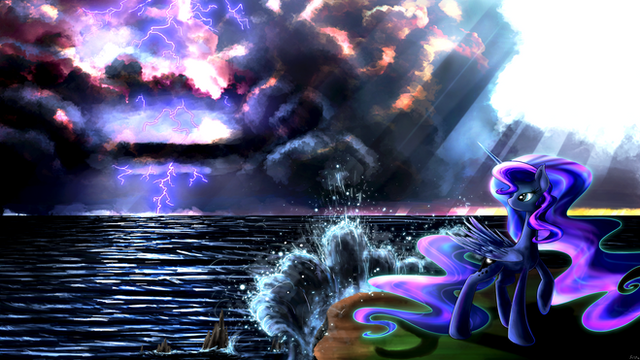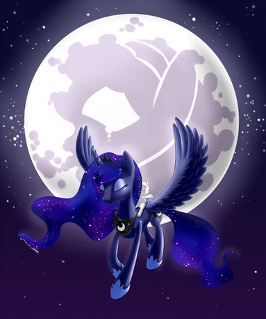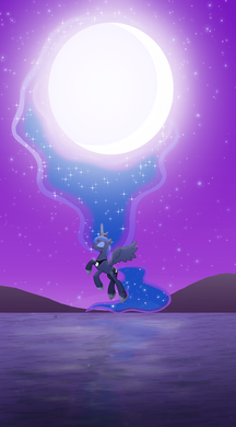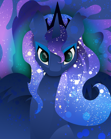 The ripple effect is lovely. And so is that in-universe-book-illustration style look on her and the neon mane outline. And the different direction of stars in her mane/tail. Looks fine. Well done.