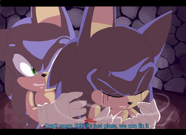 However, EXE is the only one who can, and he's the one who knows what Fleetway is planing. So X took the duty upon himself to protect Sonic from his demonic self- but Sonic doesnt know this and is still repulsed by EXE- So sadly X must lurk around him to make sure he's okay at all times.