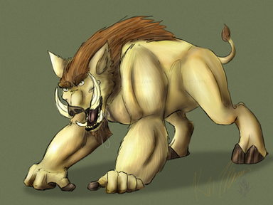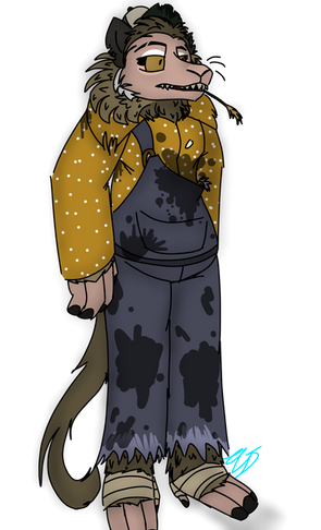 another experiment from k-9 labs - a western lowland gorilla / wild boar hybrid, known as beau. he and trudy bernadette are considered cousins due to being created from the same experiments... though it's unknown why they were created in the first place. in beau's case, there was the unintended side effect that he's able to eat any kind of mushroom without any ill effect.at some point prior to the events of the series, beau escaped k-9 labs along with several other experiments (notably kensington), and he's been living in the wild with that group for several years at this point. he's generally pretty chill, and overall introspective - beau also has a feeling like something is definitely wrong, and thinks kensington is hiding something from the rest of the group. beau doesn't necessarily think it's for malicious reasons, but nonetheless is wondering what's going on.