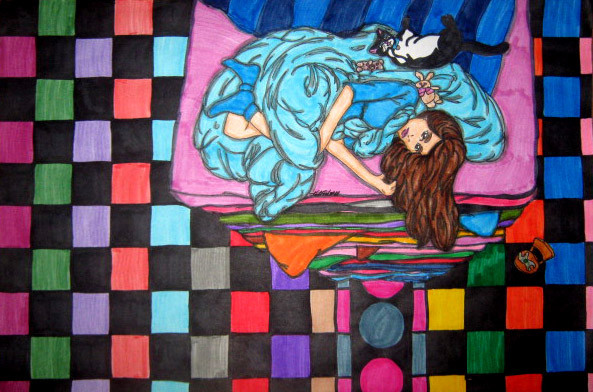 For art class. We did "Artist Trading Cards" and this was my boring one. My good one can't be put up 'til the end of the year cause my art teacher is either putting it in the art show or using it as a reference for the next semester's class.Anywho, I was gonna say "The world is so full of a number of things, I think we should all be as happy as kings" (hence the crown) but I quickly realized that wouldn't fit and it would take forever... so I left it like this.