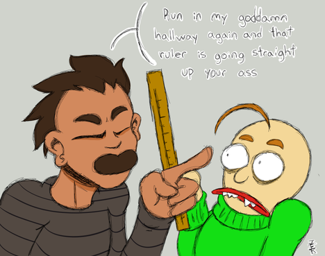 =< *ate Baldi's Ruler* I CAN'T HELP IT, BECAUSE I'M A DEVIL CAT, BUT I'M GOOD CAT STUDENT!!!!!
