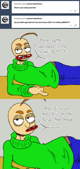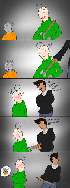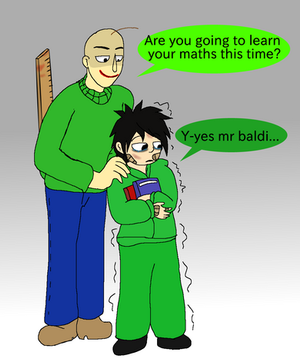 Lol I know. XD It's funny cause I don't mind kink art, but I like that you gave Baldi a personality outside of "spank spank SPANK" like others do, I like the sarcastic asshole vibes you gave him, its funny to watch. XD