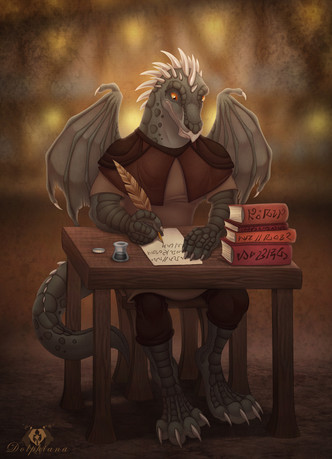Traditional drawing commission for Quas, of their southern sergal character exploring and mapping the desert around Gold RingQuas (sergal) is © to temeraire-windragon
