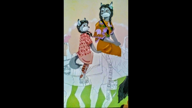 The sketch in color. This Native American wolf family are in their best outfits. Their outfits are from David Rickman's book Plains Indians. To watch the art in progress, go to www.youtube.com/watch?v=4269cs…Related content