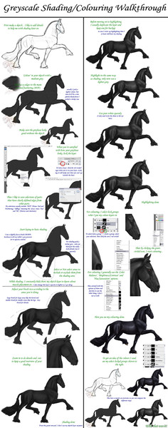 First part of a tutorial that will cover how I 'shade' horses and other equines. It won't just be shading (as is obvious in this part), but it covers everything I do after being done with the lineart and base colouring until the finished horse.