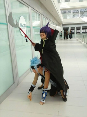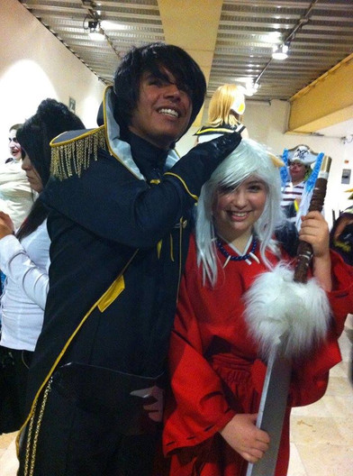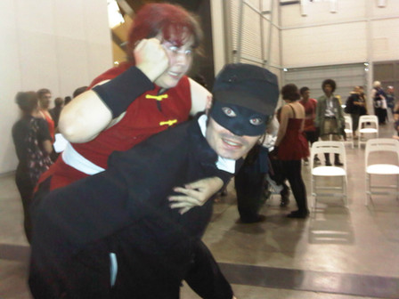 I met a Kurogane at Con-Nichiwa last weekend. I was getting food at the vender's and I turned around and saw him. It took 3 seconds to register and then I was like, "KURO-PUNNN!!" and glomped him. Both of us stayed in character, for most of the 10 minutes we hung out. Pictures soon followed.He later went into the masquerade. I don't know if he won anything, I didn't stay for the awards.