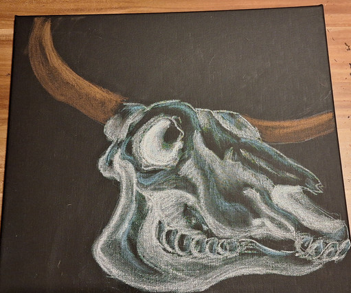 So, a couple of years ago I was on my way home from an out-of-state venture. Stopped at a gas station to fill up, and I found a perfectly good, unused, still wrapped canvas propped up next to the garbage can. Brought it home and it's been sitting ever since. Felt like I was 'saving' it for some big project...Anyway, last night I was bored, wanted to paint, but had nothing to paint on. EXCEPT THIS HUGE CANVAS. Figured it was time to ruin it.