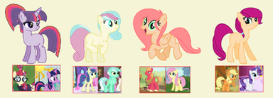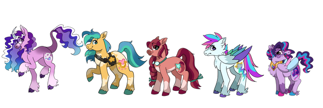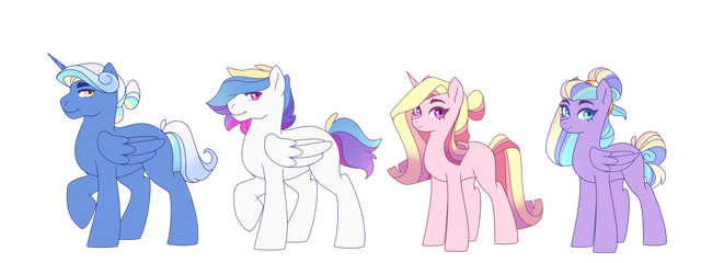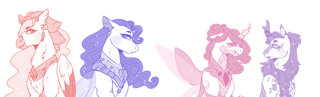 First of two commissions for PoneBox ! Here we have Princess Cadence X Rainbow Powered Mane 6. This whole batch are stallions on the more feminine side of presentation. There were sooo many touch ups I had to do to the colours after the lineart, so many steaks, stripes, gradients and lil hearts and stars!Here is the stash folder with each individual piece:- sta.sh/23xg0m3j89i