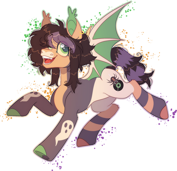 History: Pumpkin born to a zebra father and a bat pony mother but his mom ended up leaving their family. His father usually doesn't like to take about her but she pretty much lost interest in the Zebra and just went into the Everfree forest just to never come back. His father was a farmer who specialized in gourds of all kinds. Pumpkin Patch had helped his father out on the farm everyday until he was old enough to go to school. He was kinda bullied for a bit but he never really had the time to let it get to him between his schoolwork and his farmwork. He did begin to realize that even the teachers discounted him due to his race. This enraged him and he began working even harder. That being said, he and his father weren't too financially sound. They were on the verge of loosing their farm when the country fair came along. There was a biggest pumpkin competition with the first prize being 1,000 bits and Pumpkin Patch took the chance to save the farm! He studied hard in how to make a pumpkin grow larger. He then discovered a way of making fertilizer that increased the growth of various gourds and squash. He tried it out and after a bit of trial and error, he got it! They entered the pumpkin and it got the blue ribbon at the festival. He got his cutiemark and continued in the field of botany ever since. He's now in college in Canterlot, being known as the first bat-zebra pony hybrid to get into Hoofvard.