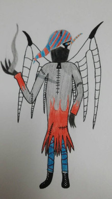 He's very kind and compassionate, despite how violent his father is. He prefers not to fight, but he will put anyone who angers him in the ER. He is very slow but when he travels in the shadows as a shadow. He usually wears an eyepatch over his left eye so people don't run in horror at the fact he's pretty much a demon.