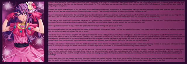This caption is actually a sort of REDUX of a caption none of you will ever see. It was also for Gold and had the same 'Turned into a Raver at a con' going on. Aiko's last line still makes me crack up here. I've never been to a rave and its not really my scene so this is all based on media or what I've seen from afar. Sorry to any hardcore Neon Huffers out there.