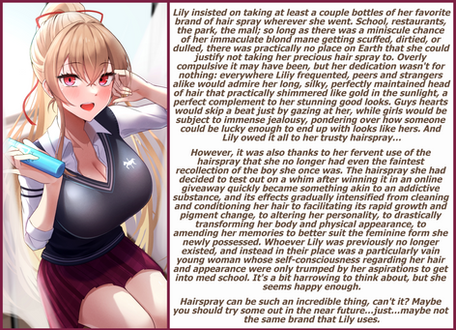 I don't remember much about writing this or the other caps in this timeframe honestly. I like the concept in tf of, having your hard work stolen by the person who changes you. It feels so unfair and immoral... And that makes it hotter. Not a lot else to say, its very much 'a tg caption' in every sense.Commissions: Caption Commissions Open!