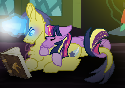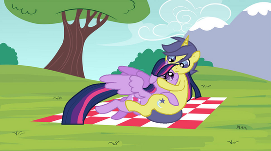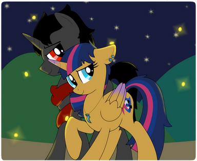 The scene depicted is a happier time, before the pair return to Equestria where the daughter of light and the son of darkness will both have to confront their parents.
