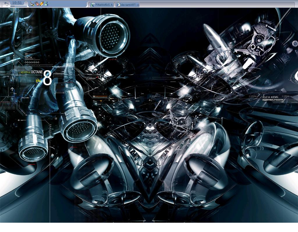 This is my desktop. I am running Windows XP with the LiteStep Shell. The theme, dont kno what its called. The wallpaper is from ekud and its called industrial octane. Very nice piece of work if i might say so myself.