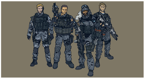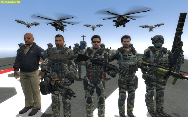 New North American multi-branch anti-terrorism task force. Left to right: US Army Captain Steve Rogers, USMC Sergeant Frank Castle, US Army Sergeant Wade Wilson and Canadian Defense Ministry operative "Logan". Taking advantage of their small unit size, they are able to get in, destroy everything and get out quietly. They are all equipped with suppressed 300Blk rifles.this is just an idea of mine and i used wikipedia to check the fictional military background of each member - and like everything nowadays, there are conflicting stories. but i chose to use the ones that worked for my idea.