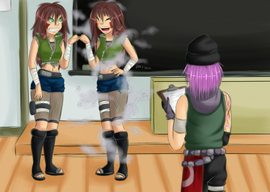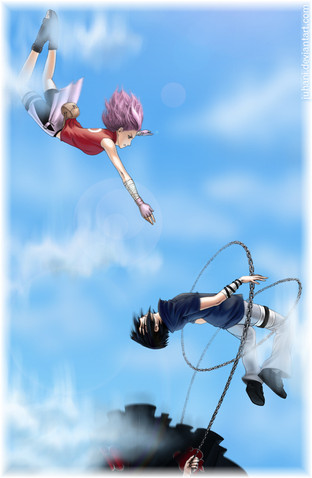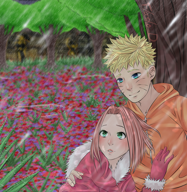 It's a well done piece. The colors, especially the background, help to compliment Nauto's feelings as shown on his face. The way in which Naruto and Sakura ate conveyed shows a sort of understanding, as if she not only sees Naruto as he presents himself to the village but also the person he strives to keep inside, the inner demon or inner self. The faces are a bit hard to make out due to the vibrations given off by their bodies in the picture. Lastly, Sakura's experssion seems a bit forced and unnatural. Keep working and I have no doubt we'll be seeing many more great works wrought by your hands!
