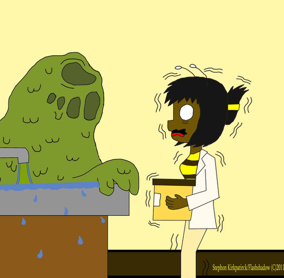Becky: Oh God! *vomits off-screen.* Ahem, well as graphic as that was, it would seem the city was once again saved by the (ahem) heroic actions of Colossal Lass. Back to you, Seymor.