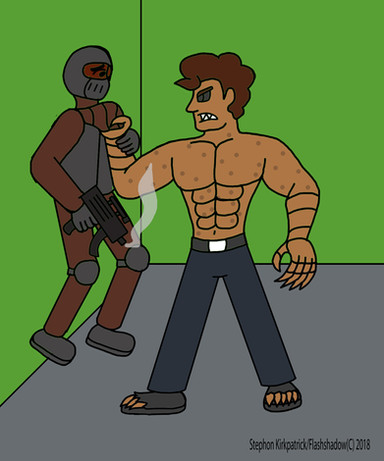 *Becky's speech was interrupted with a loud and violent noise that sounded like a mixture of shattered bones and punctured flesh. The normally theatric and good-natured Colossal Lass had decapitated the monster leaving a horrible bloody mess that one would usually find in a slasher film or a Mortal Kombat game. To add insult to injury, Colossal Lady then punted the monster's severed head into the ocean. Punctuating the moment with a primal shriek. *