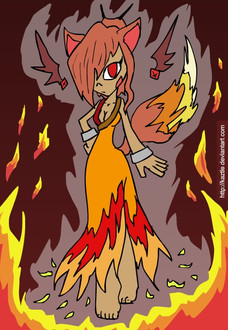 Powers: Kitone is a master of illusions and genjutsu. She often places illusions of herself and others to throw-off her opponents. She also has the power to generate intense heat, she can use this to incinerate her opponents and even create powerful fire bombs. Another unique weapon is her large tail, which can double as a whip to snare her opponents or a club to pulverize or throttle her enemies. Being a fox demon, she has enhanced senses and can easily track people or things through smell or sound. One of her most dangerous techniques is creating illusions from heat, which often blow-up in a fiery explosion upon destruction.