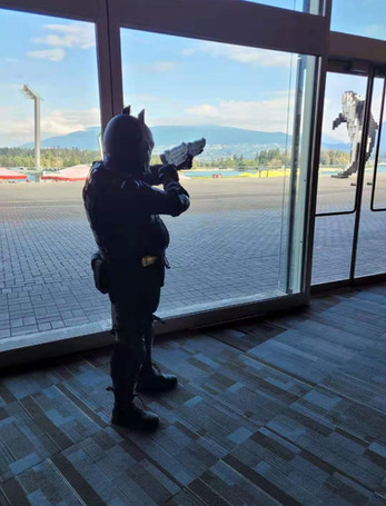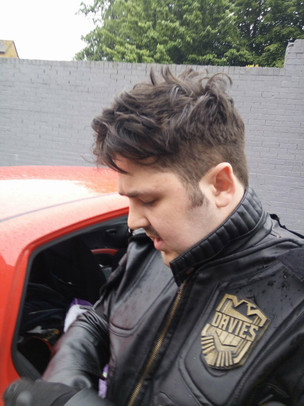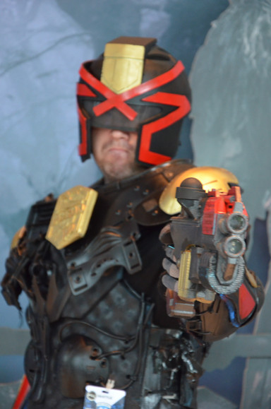 The most important part of a Judge's job is Public Relations, according to chief Judge Hershey...Being interviewed by Eamonn Clarke of Mega City One Book Club. The interview and it's contents will be uploaded this September so keep an eye. In addition, the way my Dad took this shot makes it look like we're being spied on....