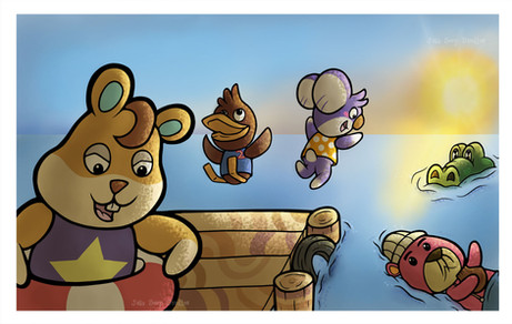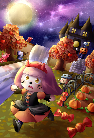 #bunny #crocodile #halloween #illustration #moon #night #rabbit #raider #creaturecrossing