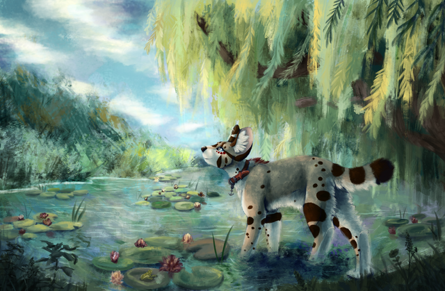 I love the tiny details you added onto the picture, the smallest details such as the 'glowing' effect on some of the, grass-barley? The butterflies make a soft vibrate feel, and the very detailed features such as the water moving in a realistic way, compliments the water rippling effect.