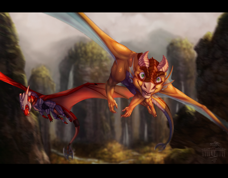 Absolutely incredible artwork! Love the look of the dragon and those huge horns of his. The pinkish/ orange hue of the sky is breathtaking and the buildings below in foreground remind of buildings in greece
