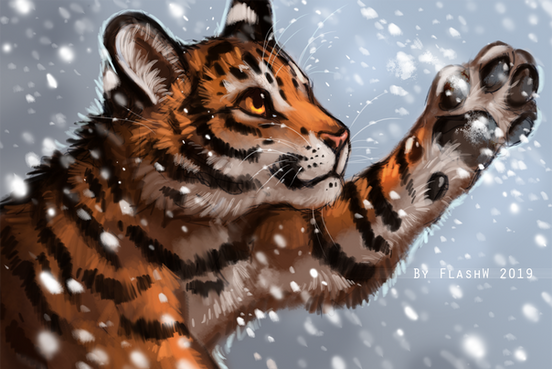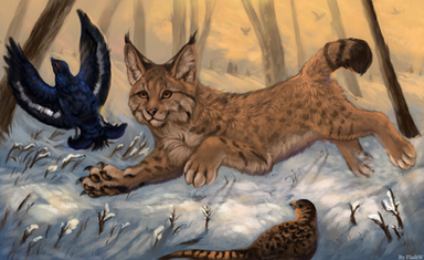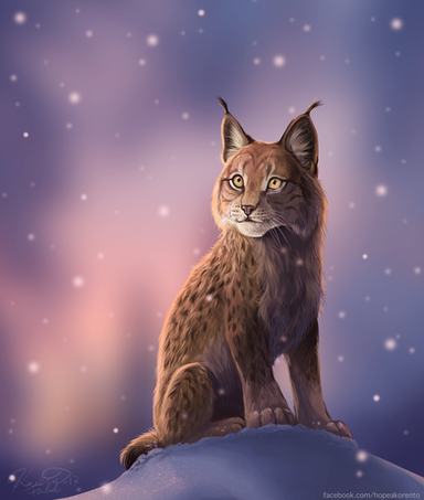 Wow! I really love the colors you used for this piece; the warmer colors of the lynx make them pop against the cold, icy background.