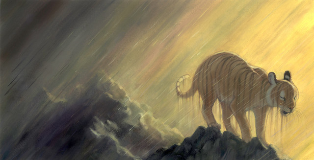 An expressive picture. The situation seems hopeless, but is it really? There is still a light that penetrates through the rain and where there is light, there is hope.