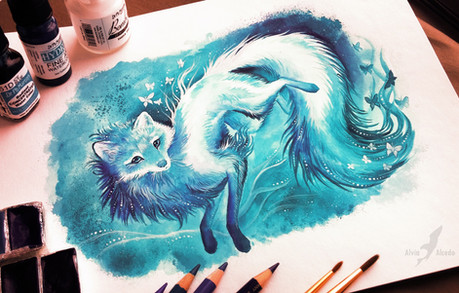 Never thought that someone would pair up a fix and jellyfish in a drawing before. And the results look very pretty!