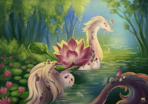 Beautiful artwork! I just adore the colorscheme you chose! The dragon looks so majestic, almost spirit like! The water effect is so dreamy too! Love your stuff!