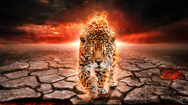 It’s very clear there are some real demons to be found here, as the sheer, burning anger emanating off this piece is well-reflected in the vicious snarl of the cheetah, the hellish fiery background that can look like the inside of one’s mind, and those symbols of hope & lifting spirits disintegrating into dust.