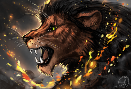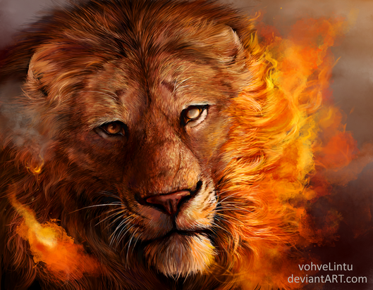 A lion full of furiosity and power. The coloring so wonderful, that ist blinding. The text so awesome that you get mute.