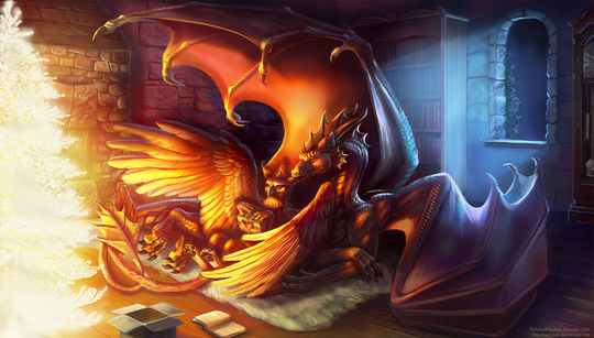 Aww they are keeping warm on a dragon's belly <3 Your expressions are so charming.