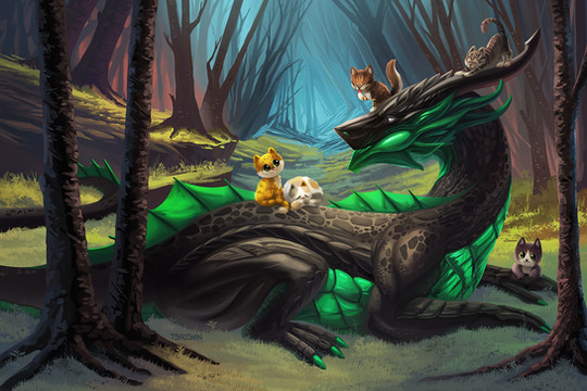 Love it! Seeing a dragon and cats—the two best creatures ever—in one painting really made my day!
