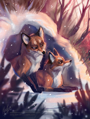 I love the lighting in this one so much! And the foxes are adorable :3