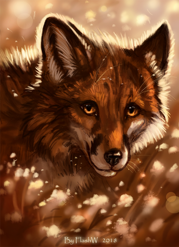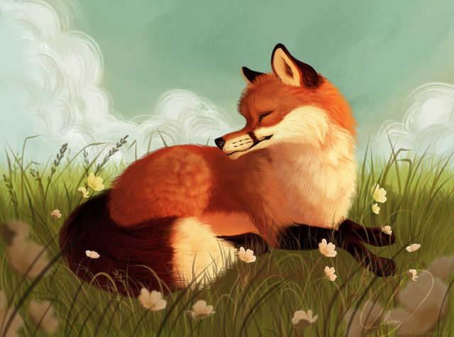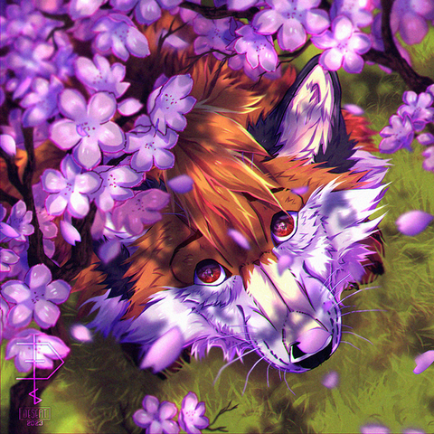 Your fur detail is amazing! The fox looks so real and soft. The serenity of this scene is superbly pleasant to look at, and the warm tones in the fox's fur and the floating petals really enhance that feeling. Beautiful!