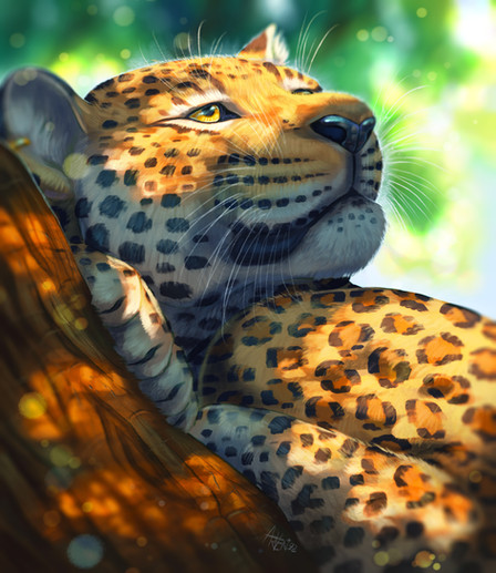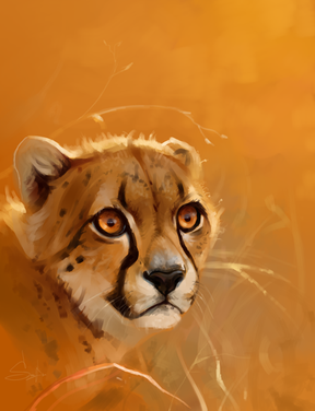 Oh that's beautiful! I love how sketchy the piece is and how warm everything seems! it's so cozy, and the cheetah looks precious OwO <3