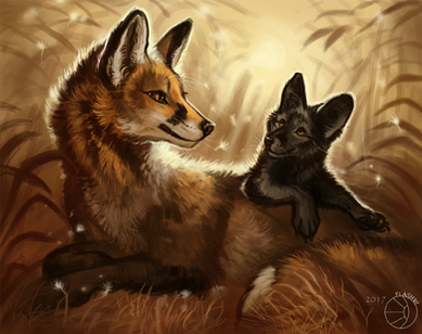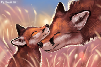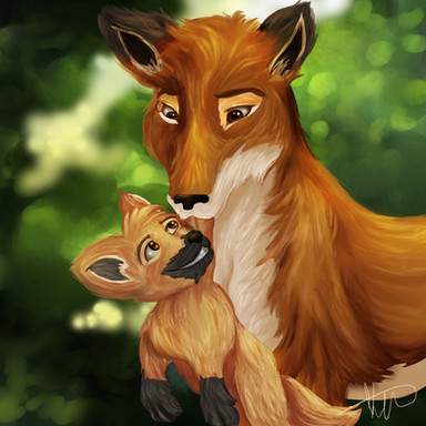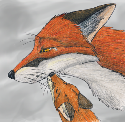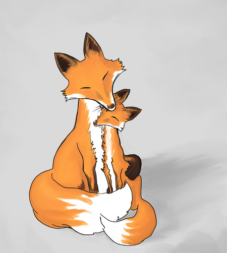 I really think that it is so beautiful and so lovely artwork picture in the whole world to see a happy fox motherβs love for her baby π·