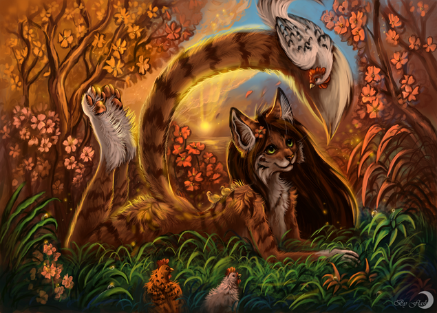 #big #anthro #cats #evening #fantasy #feelings #love #sky